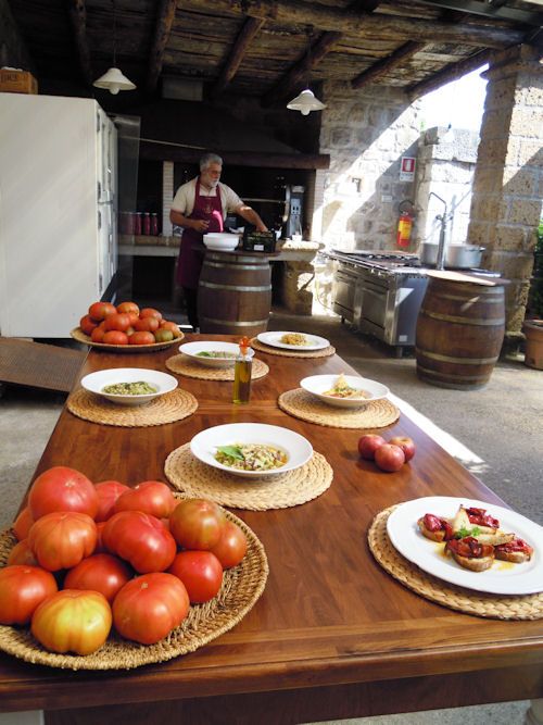 Due esempi per eccellenza di piatti della tradizione proposti dall’Agriturismo Il Contadino: la ‘Panzanella’, piatto ‘lentamente’ fresco e delizioso, a base di freselle a pezzi, pane, pomodori, sedano, capperi e olio extra vergine d’oliva; e le ‘Uova a susciello’, tradizionalmente preparate dai contadini sciué sciué (vale a dire in maniera semplice e veloce) quando rientravano nelle proprie abitazioni dalle giornate di duro lavoro in campagna utilizzando gli ingredienti che si ritrovavano in casa: uova fresche, cipolla, salsiccia di maiale o ritagli di prosciutto, scorze di formaggio per insaporire, pomodori o salsa di pomodoro, oltre all’acqua calda per diluire e al pane in accompagnamento.