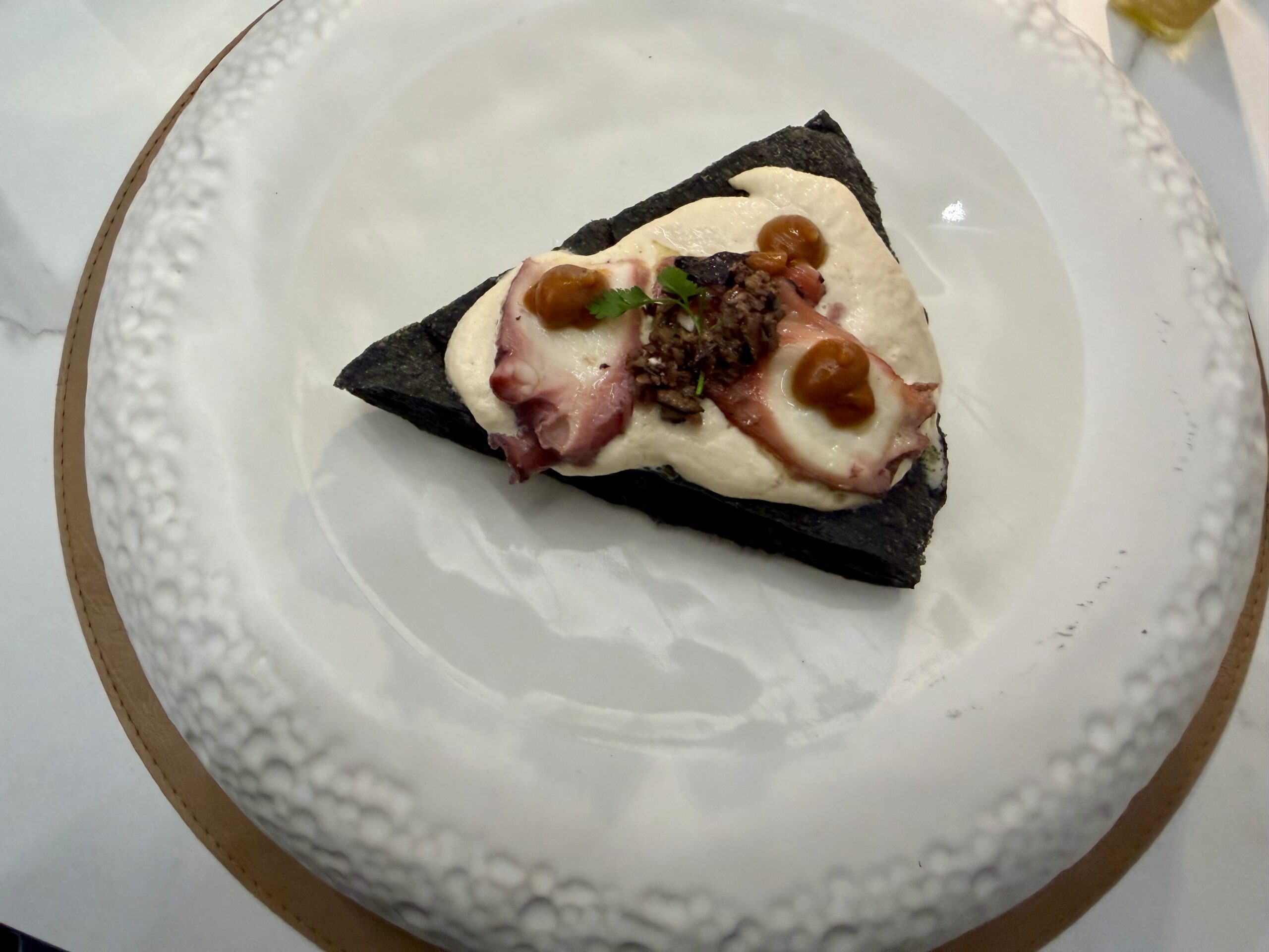 Pizza fritta e ripassata al forno al carbone vegetale con mandorla, polpo e ristretto di polpo – 5/3/2026 Torna a: Calabria. L’Artigiano della Pizza, vent’anni di crescita a Siderno Pizza fritta e ripassata al forno , impasto al carbone vegetale, mandorla, polpo e il suo ristretto – L’Artigiano della Pizza Vincenzo Fotia← PrecedenteSuccessiva →