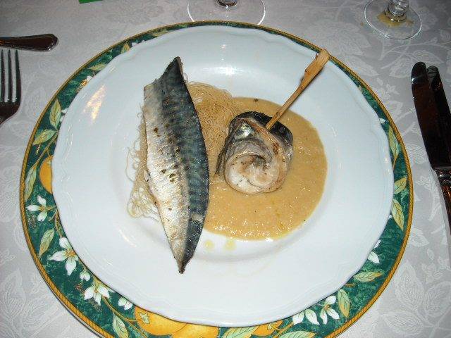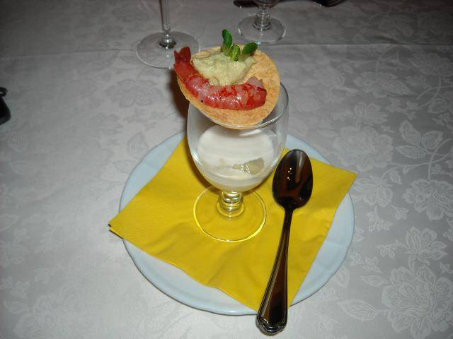 Con il primo piatto iniziale, il tortino di riso alle triglie di scoglio e finocchietto selvatico, sabbiato alla bottarga di tonno e concassé di zucchine, siamo in presenza, pur in un ambito di assoluta delicatezza, di una certa complessità gusto-olfattiva: tendenza dolce, aromaticità, sapidità.