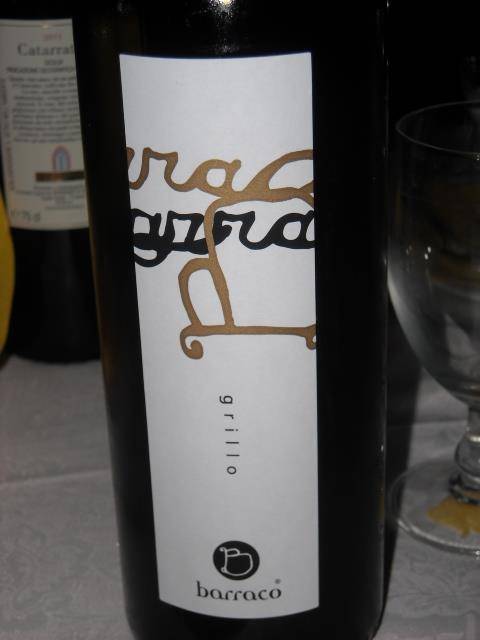 A chiusura del ritmo seguito nell’abbinamento, abbiamo accompagnato questo piatto con quello che io considero “esemplare” tra i vini naturali del pianeta: Grillo Sicilia IGP dell’Azienda agricola Antonino Barraco di Marsala, un bianco del 2011 (avrei voluto proporre il 2010 o addirittura il 2009, purtroppo il produttore non aveva bottiglie sufficienti per 115 persone….)… Si tratta di un vino che ho già definito “olistico” in queste stesse pagine… C’è una vibrazione, un’energia che si sente, si avverte, ma non si può esprimere… Registri, non senza stupore, una metamorfosi continua nel calice. E’ uno di quei vini che pretendono del tempo, prima di concedersi davvero e completamente…. Un vero fuoriclasse che tutti hanno apprezzato, grazie anche alla sua straordinaria sinergia con il piatto.