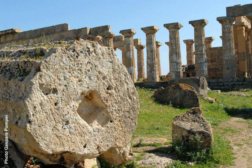 Parco Archelogico di Selinunte, suggestiva immagine del Tempio E con resto di colonna caduta in primo piano (Photo Gaspare Pompei)