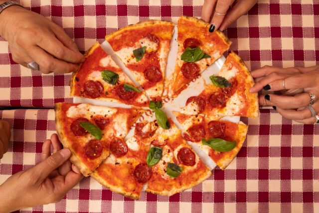 La cucina di Romeo è una vera dichiarazione d’amore per la tradizione: dai carciofi, alla giudia o alla romana, ai saltimbocca e alla coda alla vaccinara; dalle polpette di bollito al petto di vitella alla fornara, fino ai grandi classici della pasta romana – tonnarelli cacio e pepe, carbonara, gricia e amatriciana – preparati in casa ogni giorno. Particolare attenzione è riservata alla pizza, sottile e croccante, cotta nel forno a legna, realizzata con una miscela di farine del Molino Mariani di Senigallia. La consulenza è affidata a Daniele Di Grazia, docente di Pizzeria e Panificazione presso Gambero Rosso Academy e Chef Academy, mastro pizzaiolo da tre generazioni e nome di spicco nel panorama della pizza gourmet alla pala. La carta delle tonde include le classiche e alcune proposte creative, come la “Giallona”, con provola, datteri gialli, stracciatella, basilico e pepe nero, o la “Alicetta”, con filetti di alice, stracciatella e crumble di olive taggiasche.