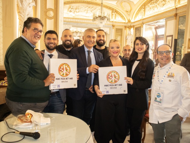 È stata presentata oggi al Gran Caffè Gambrinus la campagna “MAKE PIZZA NOT WAR”, promossa da Ecodigital Campania nell’ambito delle iniziative #NoFakeFood e #StopWar.