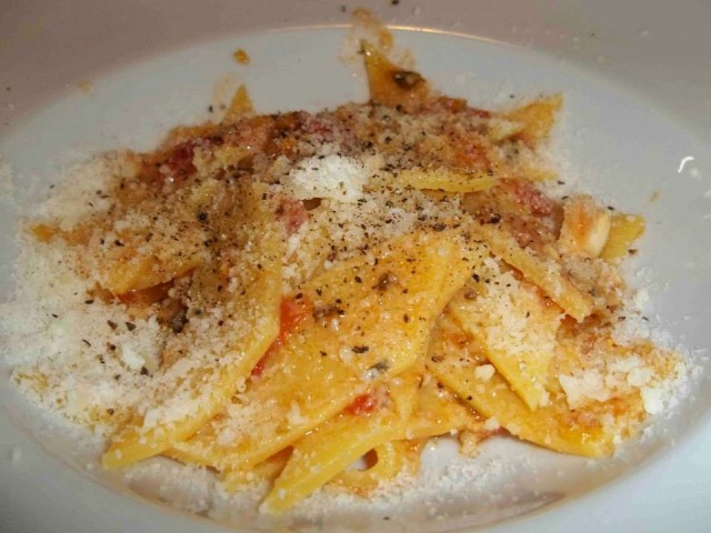 Imperdibile il fritto, per cominciare, con crocche’ di patate, frittella di mela e di pera, patata con mortadella, radicchio e gorgonzola, anelli di cipolla ed altri assaggi, quasi tutti vegetali e tutti indovinati. Di sapore e sostanza i primi, dai maltagliati al baccalà, con pepe e pecorino alle sagne con la cicoria, alla lasagnetta con il sugo della coda alla vaccinara dal gusto deciso ancorchè addolcito dai tradizionali pinoli e uvetta.