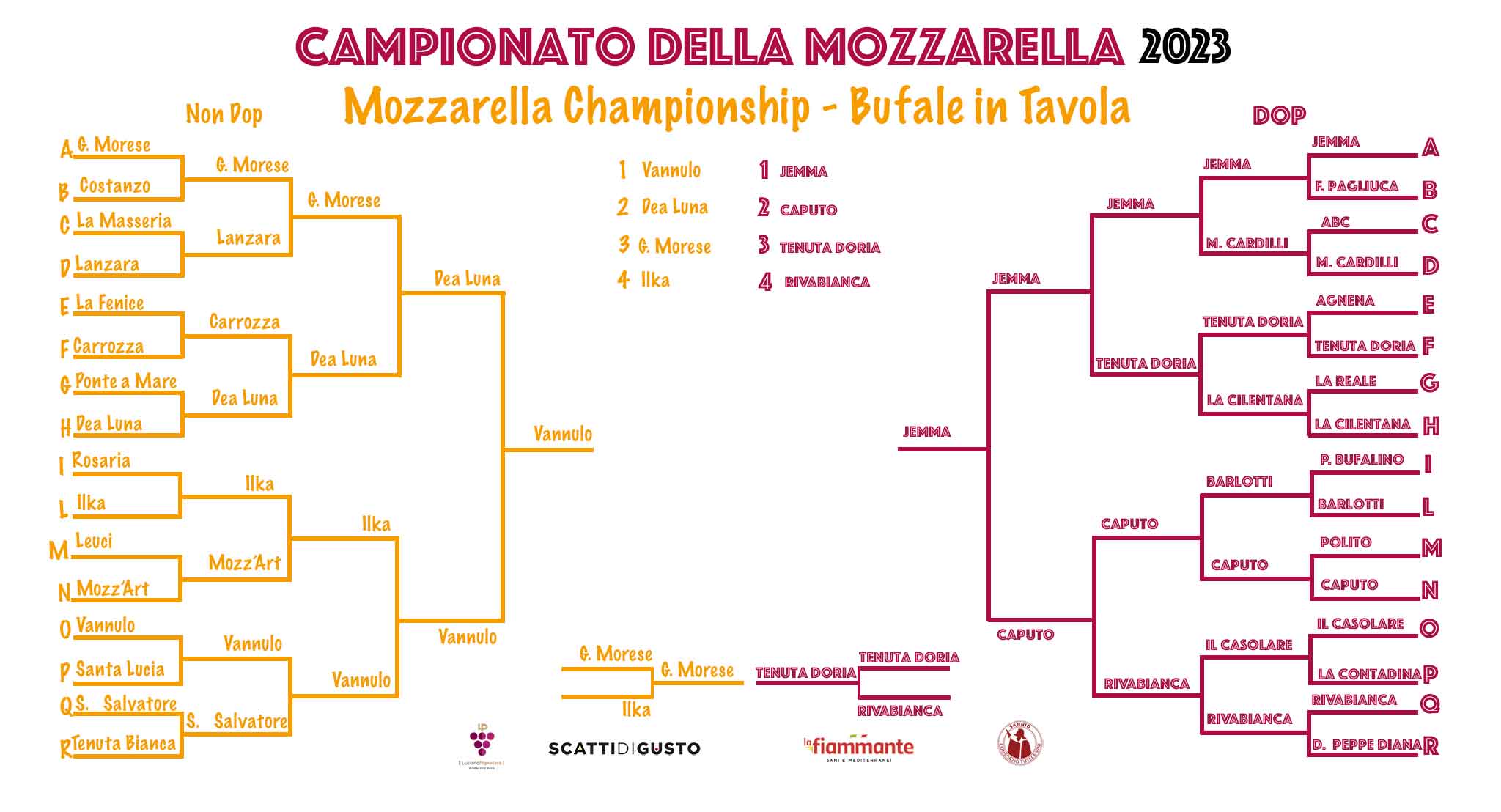 Nella categoria Mozzarella di Bufala Campana Dop vince il caseificio Jemma di Battipaglia sul caseificio Caputo di Teverola. È la seconda vittoria consecutiva di Jemma dopo quella dell’anno scorso e il 2° posto della prima edizione nel 2021. Per Caputo, un ottimo risultato dopo le prestazioni delle due precedenti edizioni.