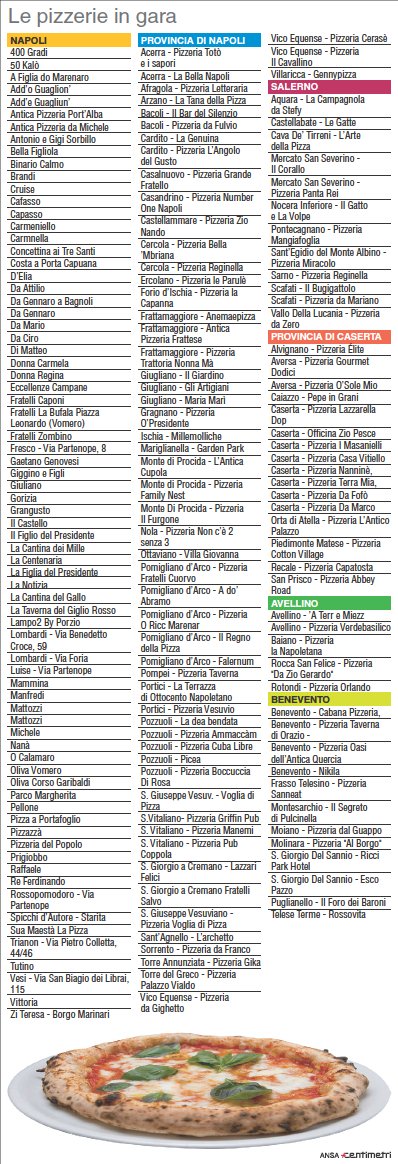 Ecco il tabellone con tutte le pizzerie in gara segnalate dai lettori del Mattino fino al 20 luglio.