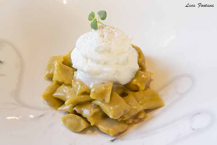 Plin al ragù napoletano con spuma di parmigiano. Un bel mix tra nord e sud, con una spuma straordinaria che ben si sposa ai plin. Unico appunto per il ragù napoletano, sin troppo poco incisivo.