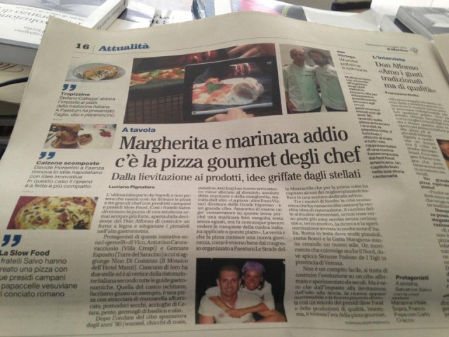 L’ultima idea parte da Napoli, e non poteva che essere così: far firmare le pizze a tre grandi chef con prodotti campani e presidi Slow Food. Così i fratelli Salvo diventano la punta di una tendenza ormai sempre più forte, aperta dalla decisione del Don Alfonso di costruire un forno a legna e sdoganare i pizzaioli nell’alta gastronomia.