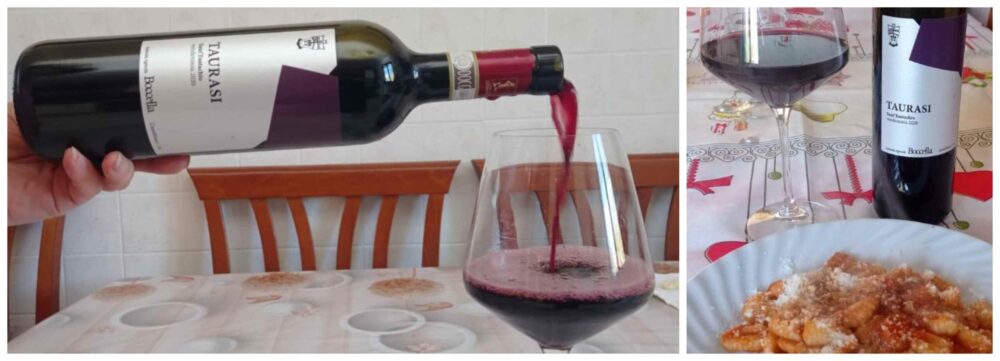 Tonalità permeata da un colore scarlatto vivo ed appariscente, tendente al granato. Impatto olfattivo bene articolato e di grande rilevanza, laddove il naso si rende protagonista percependo subito orgogliosi e poliedrici profumi di ciliegia, prugna secca, carruba, scorza d’arancia, mandorla tostata, fragola, gelso nero, cassis, mirtilli, more, viola, sfaccettature di macchia mediterranea, riecheggianti vibrazioni speziate di pepe nero, curry e noce moscata e svolazzi terziari di tabacco, liquirizia, cioccolato fondente, caffè torrefatto, cuoio, china, grafite e goudron. In bocca esordisce un sorso caldo, esplosivo, asciutto, infiltrante, terroso, generoso, accattivante, coinvolgente, solido, tonico, materico, balsamico, scalpitante, fine, vitale, corposo e bene strutturato. Ottima l’acidità, che contribuisce ad elevare l’alta carica di freschezza. Trama tannica già smussata. Legno ben calibrato. Tattilità espressiva, plastica, caratteriale, temperamentale e ben modulata. Potenziale di serbevolezza a lunga scadenza. Affondo finale epicureo. L’ho provato su un piatto di pasta al ragù e formaggi stagionati ed è stato perfetto!