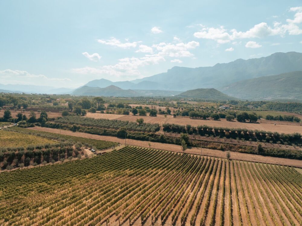 I vigneti della Cantina dei Quinti si estendono in una delle zone più suggestive del Cilento, tra i comuni di Contursi Terme e Sicignano degli Alburni, su circa 13 ettari di terreno che sono in costante espansione. Con una produzione annua di circa 50.000 bottiglie, la cantina si distingue per l’utilizzo esclusivo delle proprie uve. Questa scelta è legata a un profondo rispetto per il territorio, un luogo che regala al vino profumi e sapori unici. La vicinanza alle acque termali conferisce al vino una particolare mineralità, mentre il suolo ricco di tufo dona una sapidità e una struttura senza pari. Inoltre, il clima mite e ben ventilato favorisce una maturazione ottimale delle uve, permettendo di concentrare zuccheri e aromi. La filosofia della cantina, fondata su pratiche agricole sostenibili e consapevoli, mira a produrre vini che abbiano un impatto minimo sull’ambiente, seguendo il corso naturale della vinificazione.