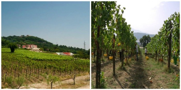 Sono almeno quattro, ed altre si stanno aggiungendo anno dopo anno, ma tutte adiacenti, le une alle altre. Occupano tutta la collina di località Scorzagalline, per intenderci, il territorio che da Paternopoli va verso Villamaina. In totale gli ettari vitati sono attualmente dodici. Nella parte più alta sono impiantate le viti di aglianico, che richiedono meno umidità ed un suolo più argilloso. Mentre nella parte relativamente bassa (400 mt. Slm) troviamo fiano, greco e falanghina.