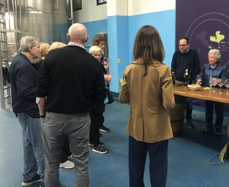 «Quest’anno – afferma Alfonsina Cornacchia – stiamo avendo una buona vendemmia. Il caldo e la siccità dei mesi estivi hanno inciso sicuramente sulla quantità, che è bassa rispetto alla media, ma la qualità è davvero elevata». Un’annata che sembra in grado di far dimenticare le ansie e le preoccupazioni della 2023 quando, evidenzia la produttrice, «abbiamo dovuto fare i conti con violenti attacchi di peronospora che hanno distrutto molti vigneti in tutta la provincia». Tra i vini assaggiati (quasi l’intera gamma, ndr.) sono risultati particolarmente graditi agli ospiti americani la bollicina rosé, con la sua freschezza caratterizzata da piccoli frutti rossi e ritorni speziati, e il Fiano di Avellino 2022, complesso e intrigante, con un naso di fiori bianchi e un sorso di albicocca e mandorla.