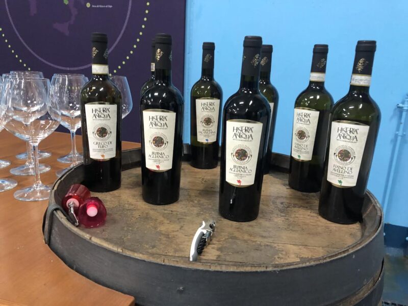 Nella giornata di mercoledì 9 ottobre, all’interno della struttura, complice l’arrivo di un gruppo di americani composto da importatori, enotecari e winelover, è stata organizzata una degustazione dei vini aziendali accompagnata dall’assaggio di prodotti tipici del territorio: soppressate, formaggi e porzioni di rape e patate. Si è trattato di un momento estremamente formativo, coordinato dal nuovo enologo aziendale Francesco Martusciello, anche perché capitato nel bel mezzo della vendemmia, con le uve a bacca bianca vinificate da pochi giorni e quelle a bacca scura pronte per essere raccolte. Malgrado un meteo poco clemente, inoltre, è stato possibile visitare il vigneto di Greco situato nel Comune di Prata e quello di Fiano a Serra di Pratola per cogliere, anche attraverso la geografia, un pezzo d’anima del territorio.