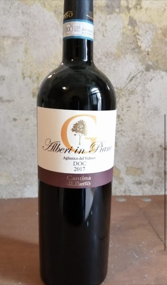 In contrada Alberi in Piano, una masseria di proprietà ha dato il nome all‘unico vino prodotto dalla piccola cantina di Barile, nata nel 2012, ma presente nel campo dell’agricoltura sin dall’800. Raffaele e Maria Grimolizzi sono i proprietari dell’azienda Cantina Il Passo che produce l’aglianico del Vulture da una vigna trentennale, acquisita circa dieci anni fa. La voglia di fare vino, la passione per la propria terra, spinge la famiglia Grimolizzi a produrre a 500 metri s.l.m., in terra vulcanica, solo 5.000 bottiglie di questo rosso ricco e carnoso. Barile è paese lucano di origine “arbereshe” (greco–albanese) dove le tradizioni restano impresse persino nelle architetture dei palazzi del centro storico, con archi e portali che manifestano le tracce di origine albanese, e dove le strade sono lastricate in pietra, a salvaguardia del patrimonio culturale. In questo luogo particolare nasce la Cantina Il Passo , in una contrada appena fuori dalle mura della città del vino e dell’olio. La Basilicata, con i suoi 4.000 ettari di vigneti distribuiti tra montagna e collina, ha la fortuna di avere un clima tipicamente mediterraneo, con sostanziali escursioni termiche, che danno origini a vini di struttura e dotati di ampiezza aromatica. Non a caso, qui l’origine della viticultura si perde nella notte dei tempi, come raccontano anche le tipiche grotte scavate nel tufo lavico, utilizzate per conservare il vino. Il vitigno principe è l’aglianico, che nell’area del Vulture regala delle belle espressioni, come Alberi in Piano annata 2017. Il colore rubino/granato impenetrabile anticipa i profumi dal timbro scuro, come il ribes nero, le more e le prugne che si fondono con note balsamiche e tocchi speziati. Al gusto è ricco, caldo e lievemente salino, con un finale intenso dai toni affumicati. Non mancate alla visita in cantina, dove sarete accolti dalla signora Maria, che da perfetta padrona di casa vi saprà conquistare insieme con il vino.