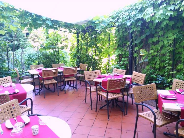 Le sale del piano di sopra assomigliano a stanze da pranzo di una vera e propria casa con divani, tavolini, credenze e tanto di pianoforte. Il legno e i mobili artigianali la fanno da padrone. All’esterno, da primavera a fine estate, un delizioso giardino pensile con tanto di pergolato di vite è la delizia dei clienti che riescono a prenotarlo: si sta freschi di giorno e di sera circondati da un delizioso erbario mediterraneo: basilico, basilico rosso, rosmarino, timo, menta, origano fresco e alloro e un profumatissimo gelsomino rampicante.