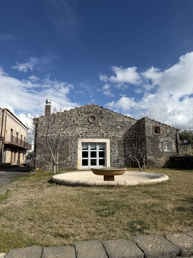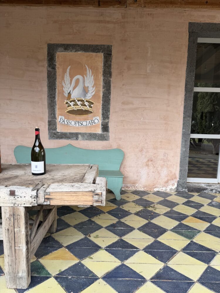 In contrada Guardiola, a 800 metri sul livello del mare, si trova un antico palmento, ora rimodernato, sede di una delle cantine simbolo dell’Etna: Passopisciaro. Ad accogliere gli ospitic’è – in primis – l’immagine un grande cigno bianco con una corona dipinto sul muro della sala degustazioni. Si tratta del simbolo della famiglia Franchetti.