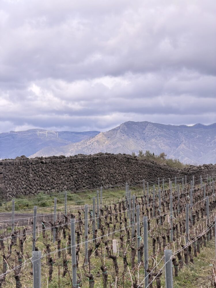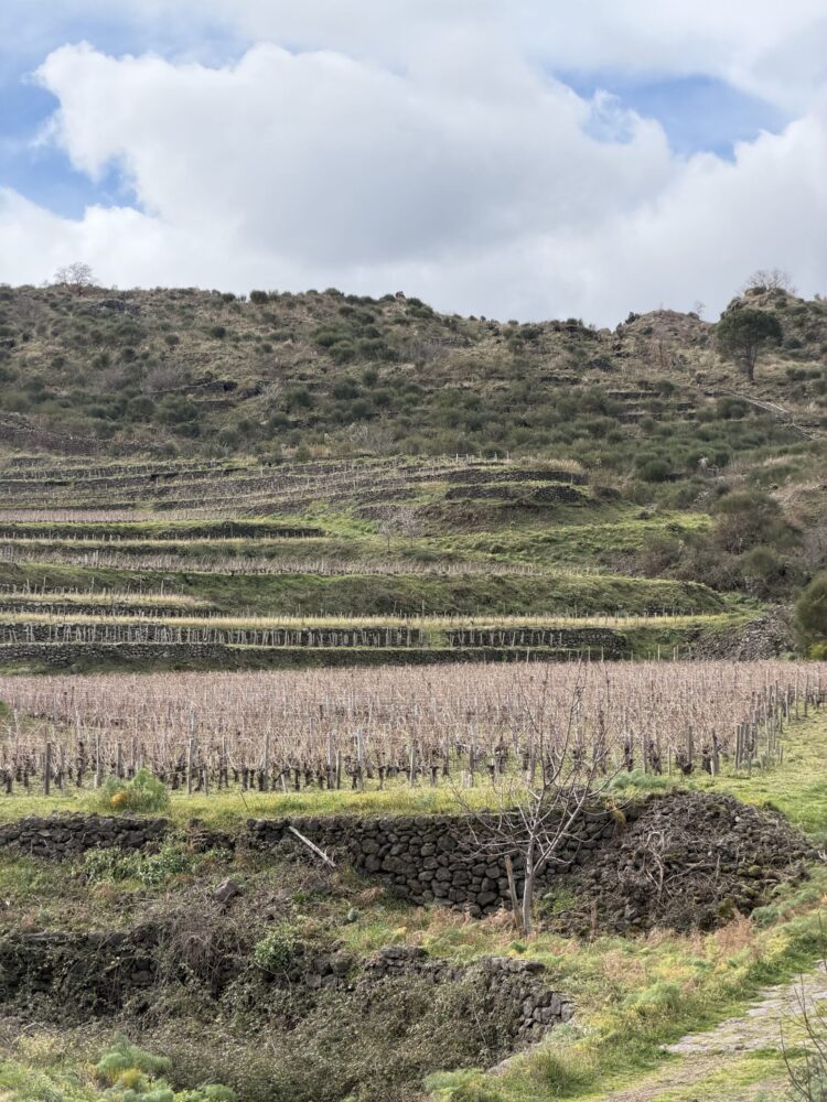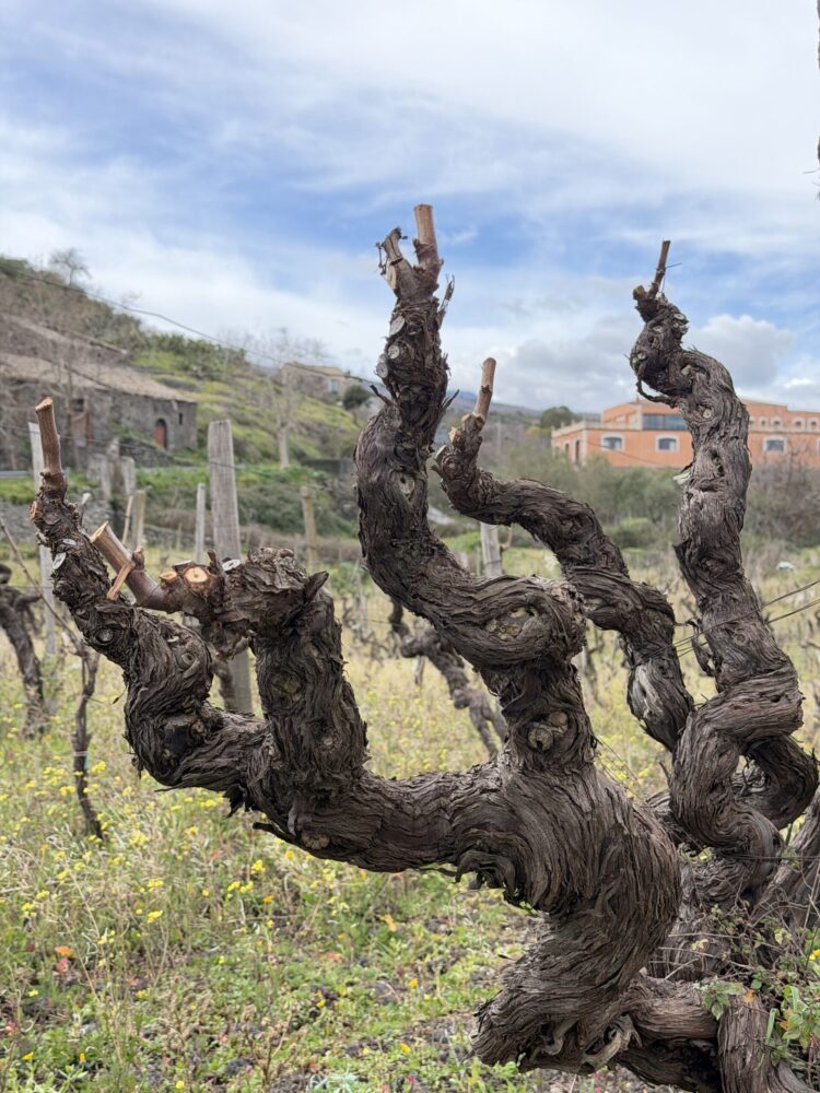 Scelta singolare quella di non puntare fin da subito sul Carricante. “Ad Andrea non piaceva il Carricante e ha puntato sullo Chardonnay, che reputava un vitigno nobile. Lui aveva assaggiato il Carricante che veniva prodotto sull’Etna negli anni ’90, ovviamente era un prodotto totalmente differente da quello odierno” spiega Vincenzo. Con il tempo però le cose sono cambiate, ed oggi l’azienda ha acquistato un ettaro di terreno a Milo per produrre un Etna Bianco Superiore in contrada Praino, a 600 m.s.l.m. Il vitigno sarà impiantato nel 2027 e si cercherà di sfruttare al meglio il suolo sabbioso della zona. Questa scelta è stato sia frutto di diversi assaggi di Carricantefatti insieme ad uno dei figli di Andrea Franchetti sia acquisizione di consapevolezza in ordine al grande potenziale evolutivo del vitigno in questione, dovuto alla sua marcata acidità. La grandedifficoltà, però, è trovare viti vecchie di Carricante.