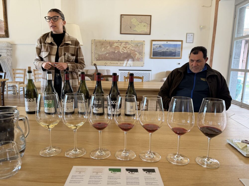 Passando ai vini, abbiamo provato alcune delle etichette dell’azienda. In primis, abbiamo provato i due bianchi dell’azienda quali il Passobianco 2023, Chardonnay in purezza, coltivato nelle Contrade di Guardiola e Montedolce, che affina per 10 mesi in vasche di cemento e grandi botti di rovere, e il Contrada PC 2022, Chardonnay in purezza da Contrada Passochianche, che fermenta in grandi botti di rovere dove affina per 16 mesi, di cui sei a contatto con le fecce fini. Le differenze tra i due bianchi sono papabili. Mentre il primo è uno chardonnay vulcanico, nato per sfruttare l’altitudine ed essere foriero di sentori minerali e fiori bianchi (nonostante la 2023 sia stata un’annata non proprio felice, a causa della peronospora che ha falcidiato il 50% della produzione), il secondo è più complesso, con sentori di frutta gialla e dal sorso lungo ed elegante. Ambedue i vini, comunque, sono connotati da grande freschezza, declinata diversamente: nella prima etichetta più tagliente, nella seconda più levigata.