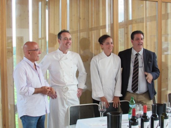 Inaugurazione con una degustazione organizzata da Miriade& Partners e guidata da Luciano Pignataro (la seconda dopo quella fatta all’inizio dell’estate dei quattro vini Sclavia al Don Alfonso) partita con il bianco “Calu’” IGP Terre del Volturno (Pallagrello bianco 85%; Fiano 15%), annata 2014 che offre note fragranti al naso: mela, camomilla ma anche un tocco di miele ed erbette mediterranee. Una buona sapidità lo rende perfetto a tavola.