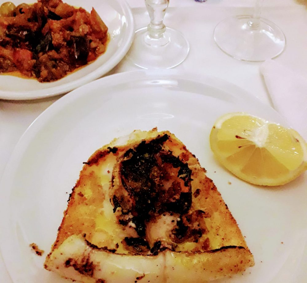 Fresco, morbido e saporito il calamaro arrosto leggermente panato, servito con un filo d’olio extravergine d’oliva a crudo, dal profumo intenso e fruttato. Proprio come il vino. Da assaggiare il Grillo proveniente da una cantina locale.