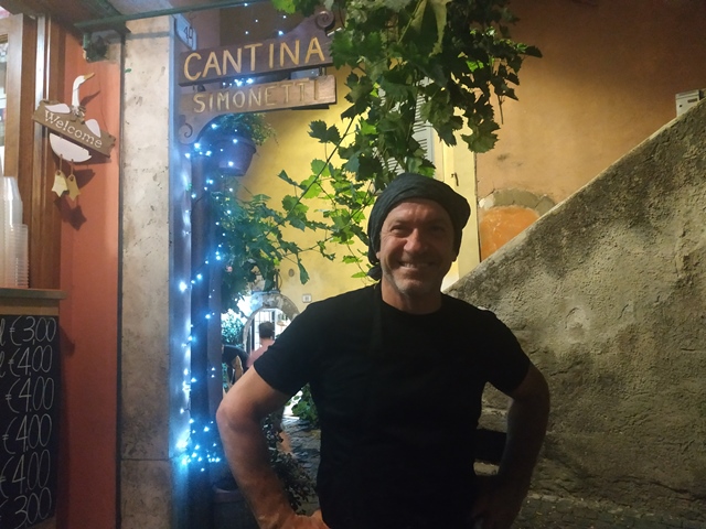Una caratteristica cantina con cucina, materie prime di qualità e una vista mozzafiato sulla Capitale: la Cantina Simonetti si trova a Piazza S. Rocco, nel centro di Frascati e a due passi dal Palazzo Vescovile. Il padrone di casa si chiama Fabrizio Simonetti: è romano, fa il cuoco da 25 anni e lavora qui insieme a sua moglie Mary. La location è suggestiva, soprattutto al tramonto: il locale è di fronte a un’antica fontana di forma ottagonale, fatta costruire nel 1840 dal Cardinale D’Estouteville.