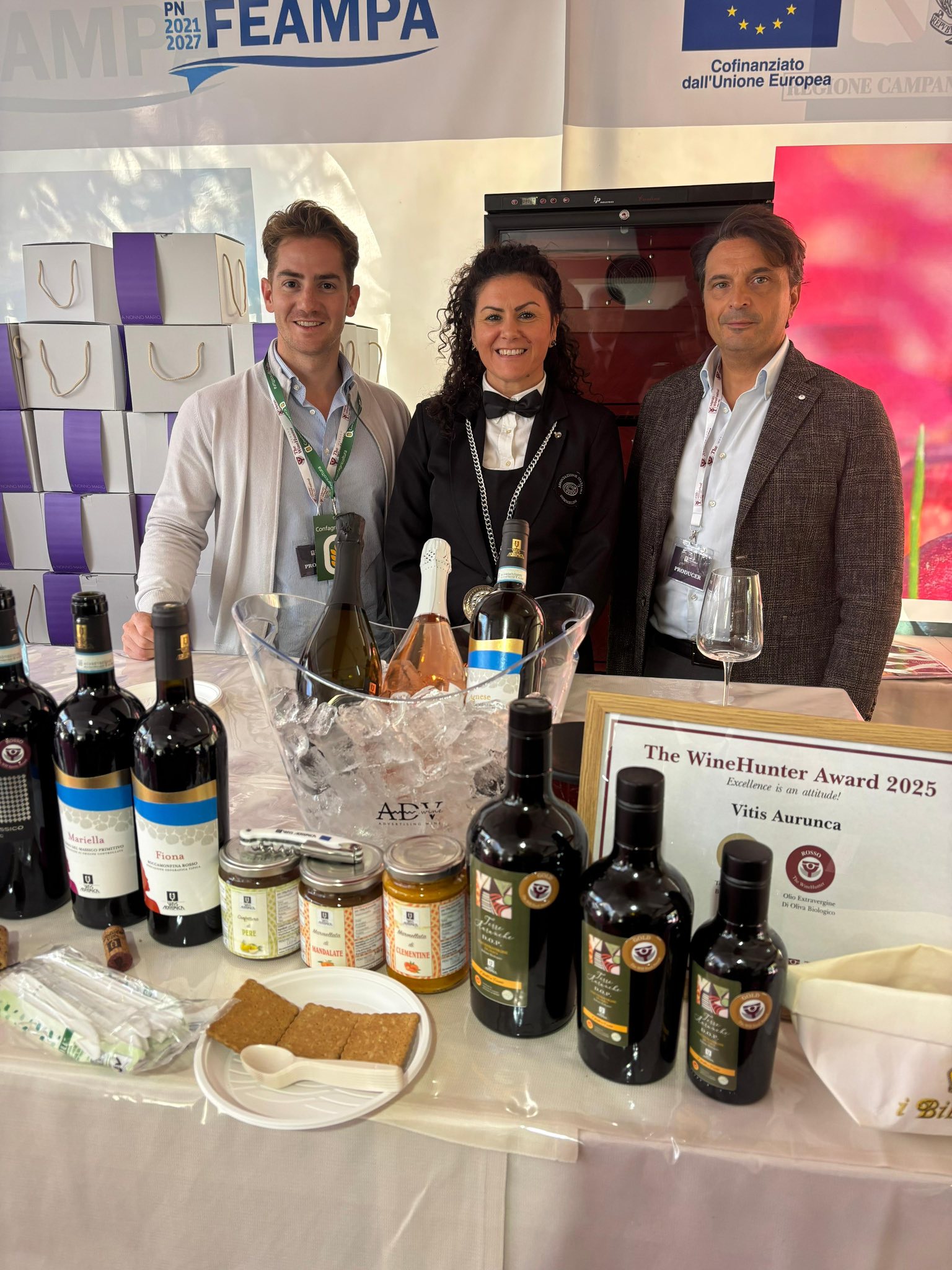 Lisa Falanghina Roccamonfina igt, Agnese Falerno del Massico bianco doc, Federica Campania rosato igt, Fiona Roccamonfina rosso igt,Margherita Falerno del Massico rosso doc, Mariella Falerno del Massico Primitivo doc, Serena Falerno del Massico Primitivo doc, Angela Spumante bianco brut, Sara Spumante Rosato brut