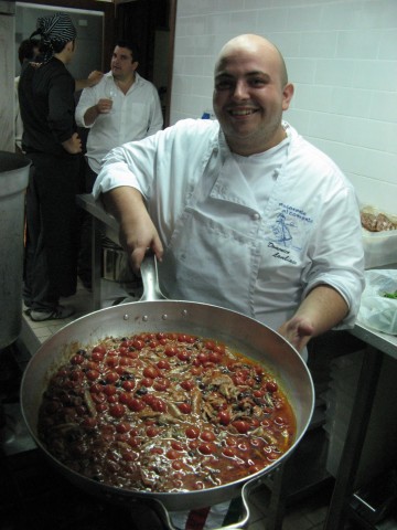 Da Cetara Pasquale invece è arrivato con la parmigiana di melanzane ed alici, la puttanesca con alici ed il suo ormai famosissimo scammaro, piatto di magro, quindi privo di carne, una frugale frittata di maccheroni condita con alici, olive e capperi, oggi proposta in forma di sformatino; in abbinamento Strione 2010 di Cantine Astroni.