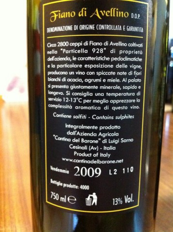 La Cantina del Barone si trova su una collinetta in contrada Noccioleto, un tempo interamente di proprietà di un signorotto del napoletano. Mezzo ettaro di aglianico e 2 di fiano, compresa la particella 928 (il nome è quello con cui è identificata al catasto), grosso modo mezzo ettaro reimpiantato nel 2008 e oggi vinificato a parte. L’azienda ha iniziato a imbottigliare in proprio nel 1998 ma già prima di quell’anno – e più precisamente dal 1985 – le uve prodotte venivano conferite a Mastroberardino. I terreni sono perlopiù sciolti, con un strato pietroso; le escursioni termiche sono sempre piuttosto accese.