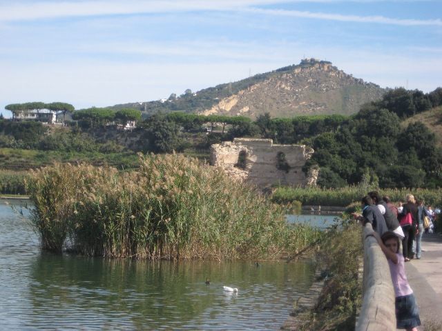 Affacciato sul lago vi è il presunto Tempio di Apollo, che si ritiene essere un edificio termale più che un luogo di culto. Il lago, infatti, aveva la fama di luogo di morte, che neanche gli uccelli potevano sorvolare senza morire, probabilmente a causa delle venefiche esalazioni gassose che all’epoca scaturivano dal fondo del lago che, ricordiamo, è di origine vulcanica. Da qui l’etimologia greca della parola Averno: senza uccelli.