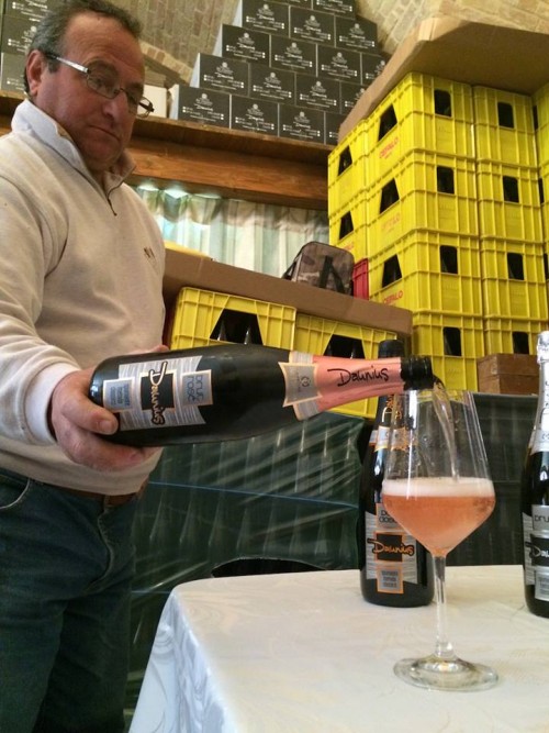 Fatto sta che produce circa 10.000 bottiglie di spumanti metodo classico da tre anni, un pas dosé e un brut da bombino bianco, 24 mesi sui lieviti, con remuage e degorgemant a mano, compreso gli altri passaggi, e un Brut Rosé con Pinot Nero, che compra sempre in daunia.