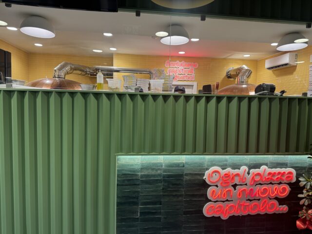 A Palma Campania ha aperto le sue porte Capitolo Pizza, il nuovo locale dei fratelli Carlo e Carmine De Luca. Dopo aver seminato dal 2018 con l’attività d’asporto pizza “Oro Bianco,” hanno deciso di dare forma a un progetto più ambizioso: un locale che coniugasse qualità artigianale, accoglienza e comfort. Situata in via Trieste 290, la pizzeria ha uno stile moderno ed elegante, giocato sui toni del blu e del giallo, con una grande sala interna, una veranda affacciata sulla strada, per complessivi cento coperti e ben cinque forni operativi, un segnale chiaro di efficienza e organizzazione. La cucina è ben attrezzata, anche spropositata rispetto al concept di pizzeria (si sviluppa su 15o mq) e si percepisce l’investimento importante a 360 gradi.