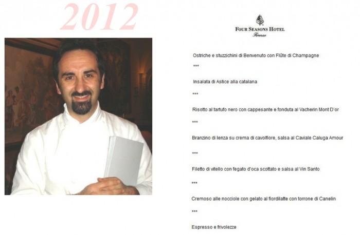 E oggi vediamo un po’ invece cosa ci offrono i ristoranti del centro Italia. Qui a farla da padrone sono i locali di Roma e Firenze ma quello che balza agli occhi è la differenza abissale che passa dal costo del cenone de La Pergola (1.200 euro !) e tutti gli altri compreso Enoteca Pinchiorri che si accontenta di 250 euro (bevande escluse, però, e sappiamo bene quanto ci si può “far male” con quella cantina) o l’invogliante Palagio dello stupeendo Four Seasons.