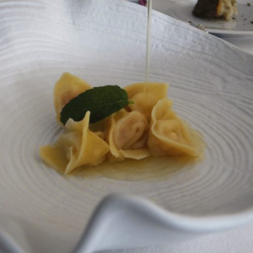 Cappelletti di Gambero Rosso di Mazara nel loro consommé al Limone di Amalfi