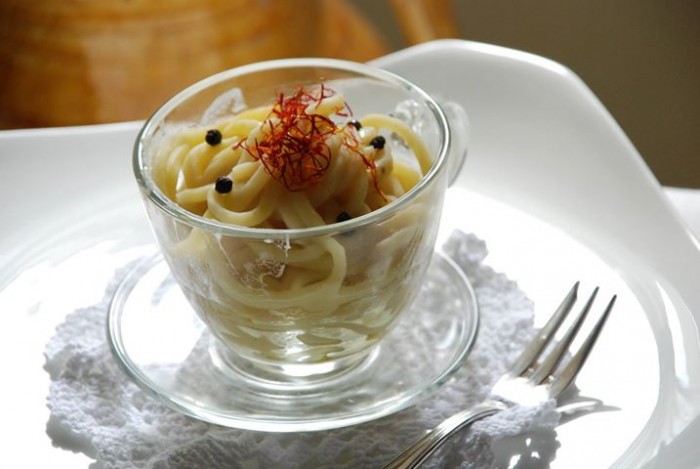 - Spaghettini con acqua di limone, olio e provolone di Peppe Guida