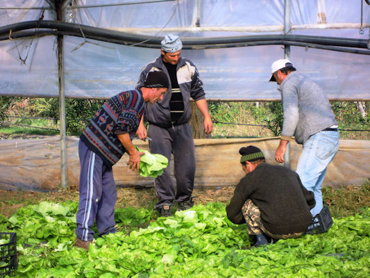 Con l’occasione, finalmente imparo i nomi di alcune varietà d’insalata coltivate in gran quantità nell’azienda agricola in questo periodo autunnale, oltre alla riconoscibile rucola: lattuga canasta, lattuga trocadero, lattuga gentilina, lattuga lollo, batavia. A queste si aggiungono poi: le insalatina da taglio, l’indivia riccia, l’indivia liscia