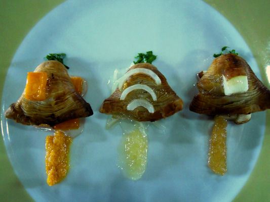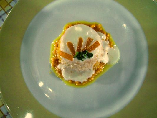 E poi il piatto, ‘tondo diadema di bellezza’, o meglio i piatti del giovane chef dell’agriturismo La Colombaia Alessandro Di Cecio. Lo chef, partendo dalle zucche butternut disposte sul suo tavolo di lavoro, ha preparato per noi quattro piatti: ‘Sfogliatelle rustiche con crema di cipolle e marmellata di mele annurca’ ‘Tortino di riso e zucca con fonduta di provola affumicata di bufala’. La zucca è l’ingrediente di base della compote a guarnizione dell’antipasto e protagonista in forma di ‘crema’ nel primo piatto. Il menu improvvisato su due piedi, prevede come secondo ‘Salsiccia sbriciolata di maialino nero casertano con pane nero accompagnato da pancetta di maialino nero casertano e tris di bruschette di peperoncino e prezzemolo’ e termina con il dessert di ‘Biscotto di pasta frolla con marmellata di mele annurca e mele annurca’. Lo chef spiega che tutti i piatti proposti nel ristorante dell’agriturismo sono preparati con i prodotti ortofrutticoli coltivati nell’azienda e DOP provenienti dal territorio.