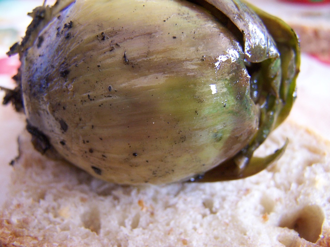 “Carcioffola. Pianta, il cui frutto si mangia fatto in varie vivande, e comunemente arrostito sulla brace, con entrovi olio, sale, pepe e spicchi d’aglio.”