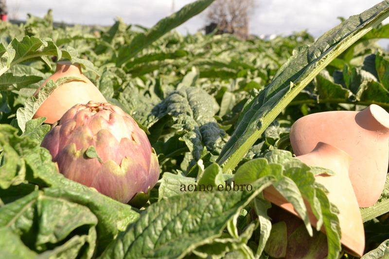 Grazie alla vicinanza al mare qui spira sempre il vento che favorisce un’agricoltura sana e mitiga le temperature estive. Il colore grigio del terreno e la forte presenza di lapilli ci ricorda che siamo vicinissimi al Vesuvio e in effetti Pompei dista solo pochi chilometri. Il carciofo in questo periodo dell’anno si manifesta in tutta la sua generosa prosperità, bello tondo e carnoso, senza spine, con le brattee tenere e rosate grazie all’utilizzo di una tecnica antichissima e geniale. Consiste nel porre sulle mamme,le prime fioriture, quelle più grandi, un cappuccio di terracotta fatto a mano e qui chiamato pignatella.