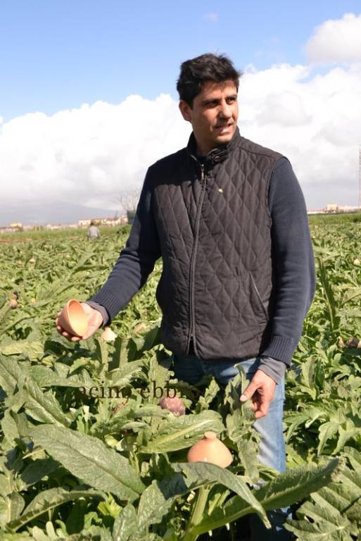 E’ figlio di imprenditori di Sant’Antonio Abate, specializzati nella trasformazione dei pomodori, attività molto fiorente in questa zona fino ad un paio di decenni fa. In famiglia si era abituati a dare direttive ai propri dipendenti sia in campagna che in azienda, ma Sabatino Abagnale ha voluto fare dei notevoli passi indietro, mettere personalmente le mani nella terra grigia e lapillica di Sant’Antonio Abate per salvare e rilanciare la coltura dei carciofi. Si tratta di una sottovarietà del carciofo romanesco, nota anche con il nome di carciofo di Schito, caratterizzata dall’essere precoce, particolarmente tenera e tinta dal tipico colore rosa violaceo. Si raccoglie da febbraio a maggio e la precocità è dovuta al clima mite del territorio racchiuso tra i Monti Lattari ad est, il Vesuvio ad ovest, a sud il mare della costa sorrentina, a nord l’agro nocerino sarnese.