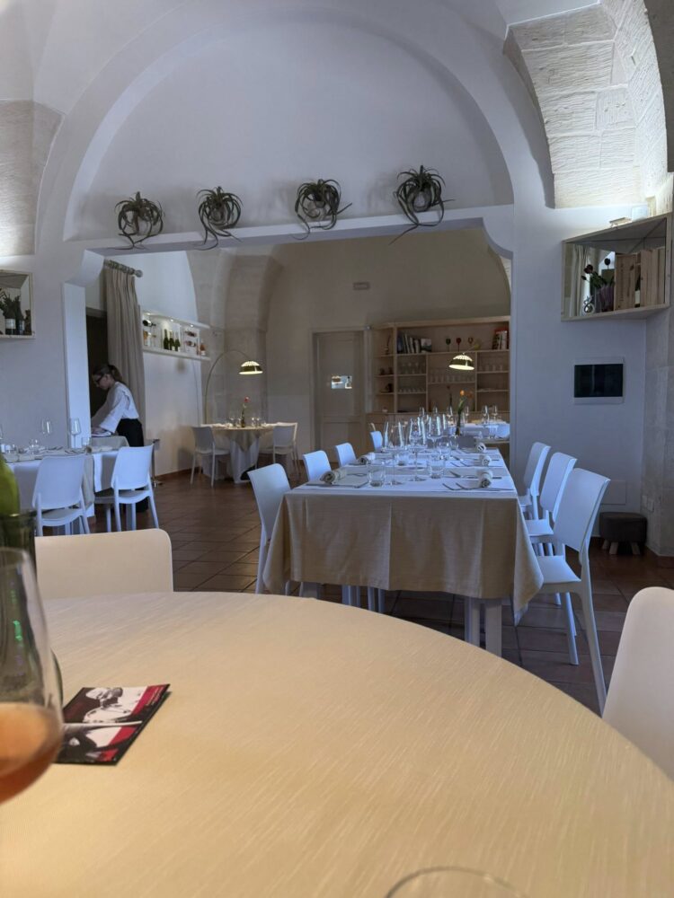 La sua è una scommessa difficile, può vincerla evitando clamorosi errori di presunzione fatti da altri, pur bravissimi: restare se stesso ma essere inclusivo, fare rete con i colleghi senza presunzione, legarsi a tutti coloro che nel territorio sono i protagonisti della gastronomia che conta. Per vincere non serve diventare l’eroe di quattro gastrofighetti sparsi per l’Italia, ma essere forte anzitutto a casa propria, soprattutto se hai fatto questa scelta coraggiosa nel cuore del tacco d’Italia, a sud di Lecce (sono circa venti minuti di auto).