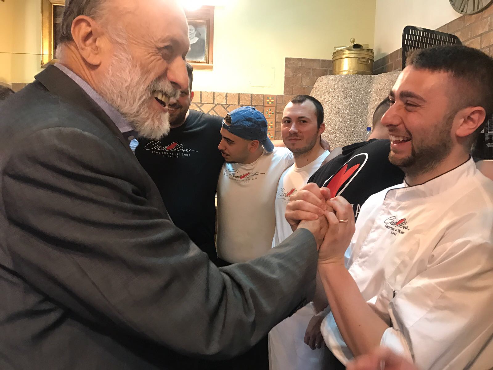 Pizziata da Carlin Petrini da Ciro Oliva, ‘o guaglione della Sanità che come suo obiettivo ha quello di non aprire altre pizzerie oltre la sua bellissima Concettina ai Tre Santi. Accompagnato da Giuseppe Orefice e Vito Trotta, Carlin ha fatto un po’ del menu degustazione e alla fine si è complimentato con Ciro. “Siete una ricchezza, l’anno prossimo tu e la tua squadra sarete ospiti miei a Pollenzo per due giorni”