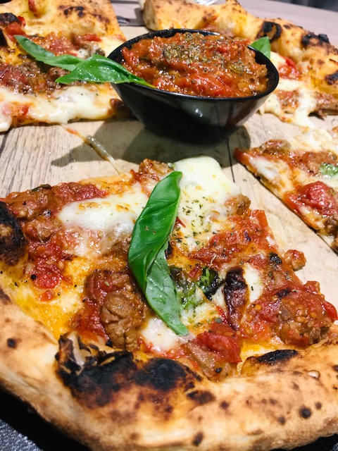 Sul mio podio personale, tra le nuove pizze c’è al primo posto la Pizzaiola, preparata con carne sottile di manzo, pomodorini di collina, provola, origano e basilico. La nota della succulenza si sposa con la dolcezza del pomodoro e con il sapore deciso della carne.
