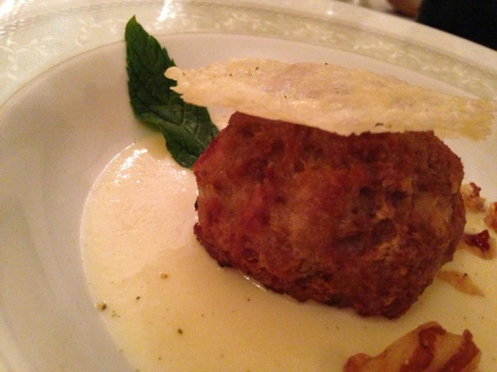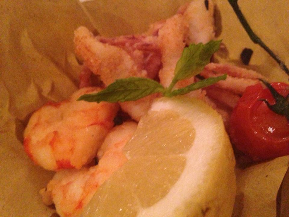 Il piatto di mare ha un bel guizzo iodato e fresco, la polpetta, invece, è morbidosa e rassicurante.