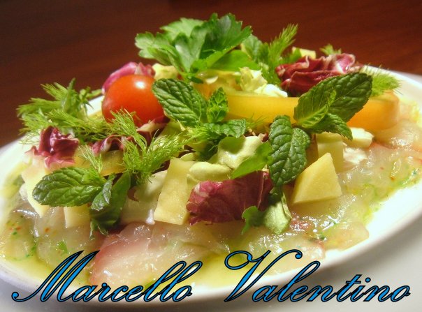Preparare una profumata citronette, versando, in una ciotola capiente, un bicchiere di olio extravergine di oliva (nocellara in purezza), il succo di un limone, il pepe rosa, il sale ed emulsionare il tutto con un minipimer.ottenuta una salsa abbastanza densa, condire i filetti e successivamente guarnirli con le verdure, le erbette aromatiche, la mela e la scorza di limone.