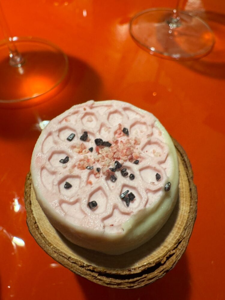 Nel corso di una piacevole cena, eravamo in sei, abbiamo provato gran parte del menu e ne siamo usciti convinti. L’estrazione del sapore c’è ed è perfetta, nessuna accozzaglia di ingredienti, presentazioni pulite ed essenziali. Anche i piatti che hanno influenza asiatica sono molto ben concepiti e integrati grazie al’uso dei brodi, il ritorno alla brace di un cosciotto di agnello intero come è rarissimo vedere in Italia ci ha emozionato, soprattutto quando poi è stato servito con la giusta cultura di salse ben eseguite. Il finale dei dolci è spumeggiante. La carta dei vini gestita da Marco Del Litto, anche lui ex Roji, è ampia, territoriale e nazionale con una bella lista di champagne con prezzi che fanno girare la cantina.