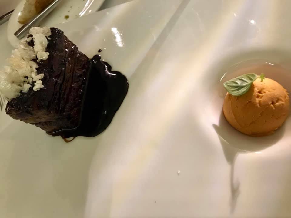 Casa del Nonno 13, pancia di maiale laccata all’aceto balsamico e gelato al pomodoro confit