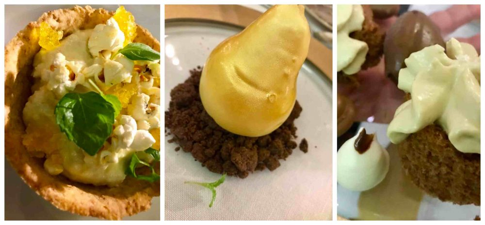 Casa del Nonno 13 Pastiera di grano con pasta frolla integrale, cremoso alla pastiera, pop corn caramellati e brina di limone – ricotta e pera – tiramisu’ ai tre cioccolati