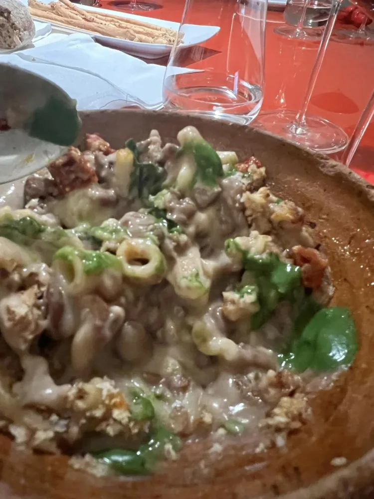 Casa del Nonno 13 -Pasta fresca tirata a mano, ripiena di ragù d’agnello e il suo ristretto, piselli, pecorino e noce moscata