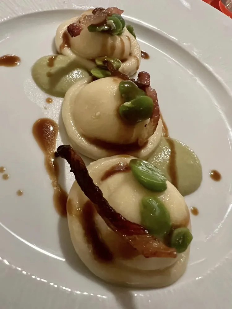 Casa del nonno 13 – Bottoni di ricotta su fave e pecorino