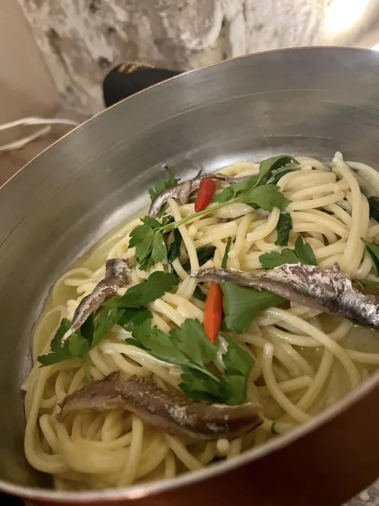 Casa del nonno 13 – Spaghettone Vicidomini con aglio, olio, peperoncino e colatura di alici